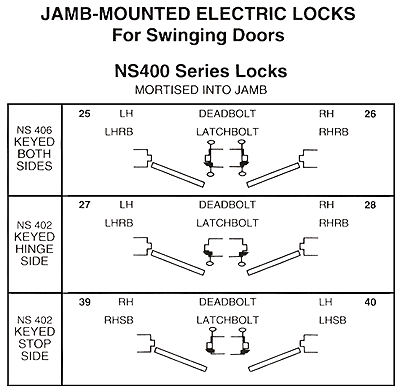 FA SWING/KEY/HAND CHART NS400 SERIES LOCKS