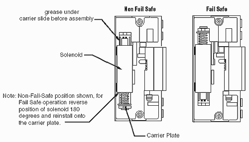 Note: Never lubricate any strike with oil, such lubrication collects dirt and forms an abrasive and sticky compound that may affect the function of the strike.